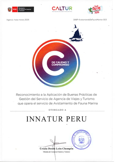 Sí. INNATUR PERÚ es operador autorizado de turismo marino. Contamos con chalecos salvavidas, póliza contra accidentes, botiquín de primeros auxilios y personal capacitado durante toda la experiencia.